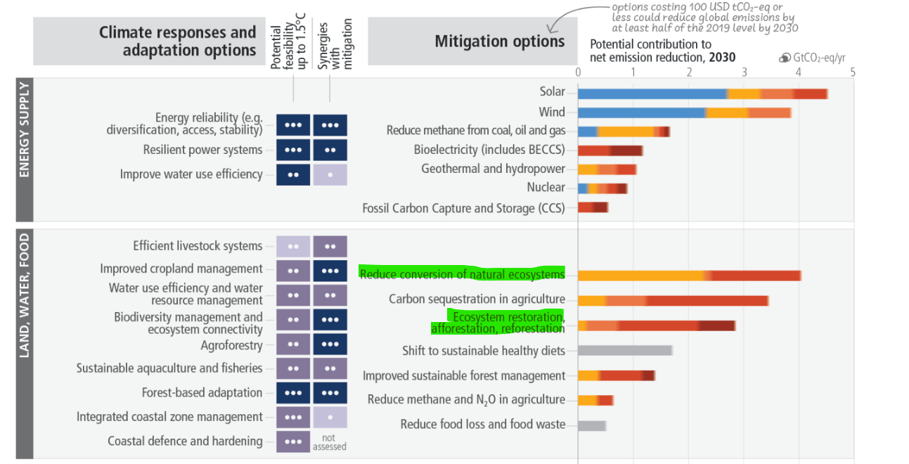 Et contrairement au solaire ou Ă lâĂ©olien, le coĂ»t de ces options est relativement Ă©levĂ© (entre 20 Ă 100$ par tCO2eq).