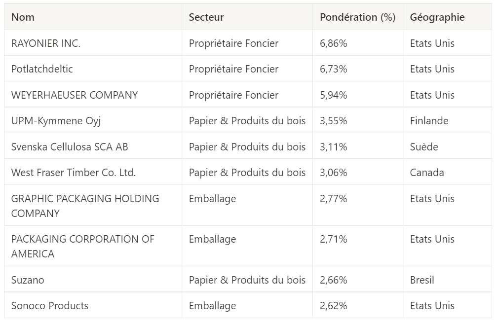 Concernant sa composition, le fonds se concentre sur toute la chaĂźne de valeur du bois.