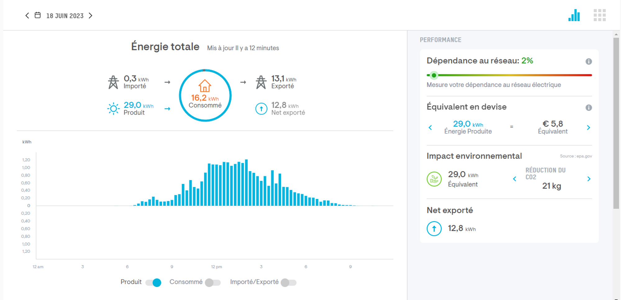 Câest trĂšs satisfaisant de produire sa propre Ă©lectricitĂ© et de suivre la production jour aprĂšs jour. Et pour moi un trĂšs bon moyen de limiter ses Ă©missions.